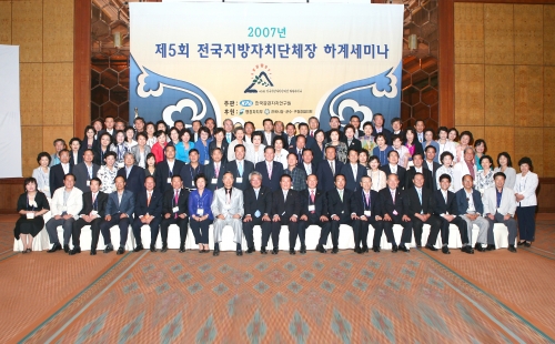 2007년 제5회 전국지방자치단체장 하계세미나를 마치며... - 07년 8월 30일부터 31일까지 신라인의 숨결이 그대로 느껴지는 경주에서 행정자치부와 전국시장군수구청장협의회 후원으로 개최된 전국지방자치단체장 하계세미나가 63단체, 120여명의 단체장 및 부인의 참여 속에서 성황리에 마쳤습니다. - 경주힐튼호텔에서 진행된 이번 세미나는 30일 정세욱 한국공공자치연구원장, 김관용 경상북도지사, 노재동 전국시장군수구청장협의회 대표회장의 개회사를 시작으로 한범덕 행정자치부 제2차관, 신세돈 숙명여대교수, 서병기 헤럴드경제 엔터테이먼트 팀장, 황용희 동서울대방송연예과교수, 정준효 일간스포츠 전문위원, 이용섭 건설교통부장관 등 여러인사의 강연이 진행되었습니다. - 부인강좌는 원종원 순천향대 교수가 뮤지컬의 이해와 감상이라는 주제로 강연을 하였고, 경주국립중앙박물관 학예사가 신라문화와 역사에 대해 말씀을 나눴습니다. - 많은 분들의 성원에 힘입어 내년에는 더욱 알찬 전국지방자치단체장 하계세미나가 되도록 노력하겠습니다. 감사합니다. 담당 : 자치경영 이국재 부장 TEL)02-2165-0816 |