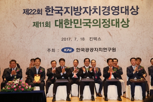 ○ (사)한국공공자치연구원(이사장 박우서)이 22년간 매년 주최하는 제22회 한국지방자치경영대상과 올해 11년째인 제11회 대한민국의정대상 시상식이 7월 18일(화) 오후 2시 킨텍스 그랜드볼룸에서 1,000여명의 주민과 관계자가 참석한 가운데 열렸다.