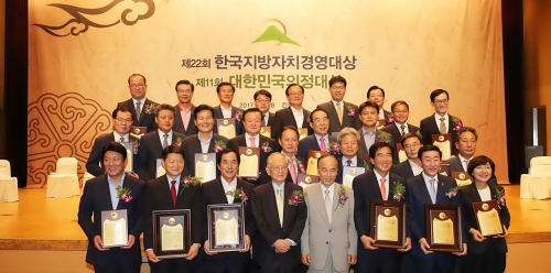 - 지방행정의 탁월한 경영성과를 창출하고 리더십이 뛰어난 지방자치단체장에게 수여되는 최고경영자상에는 ▲성장현 용산구청장, ▲박보생 김천시장, ▲김연식 태백시장, ▲정상혁 보은군수가 각각 선정되었다.
